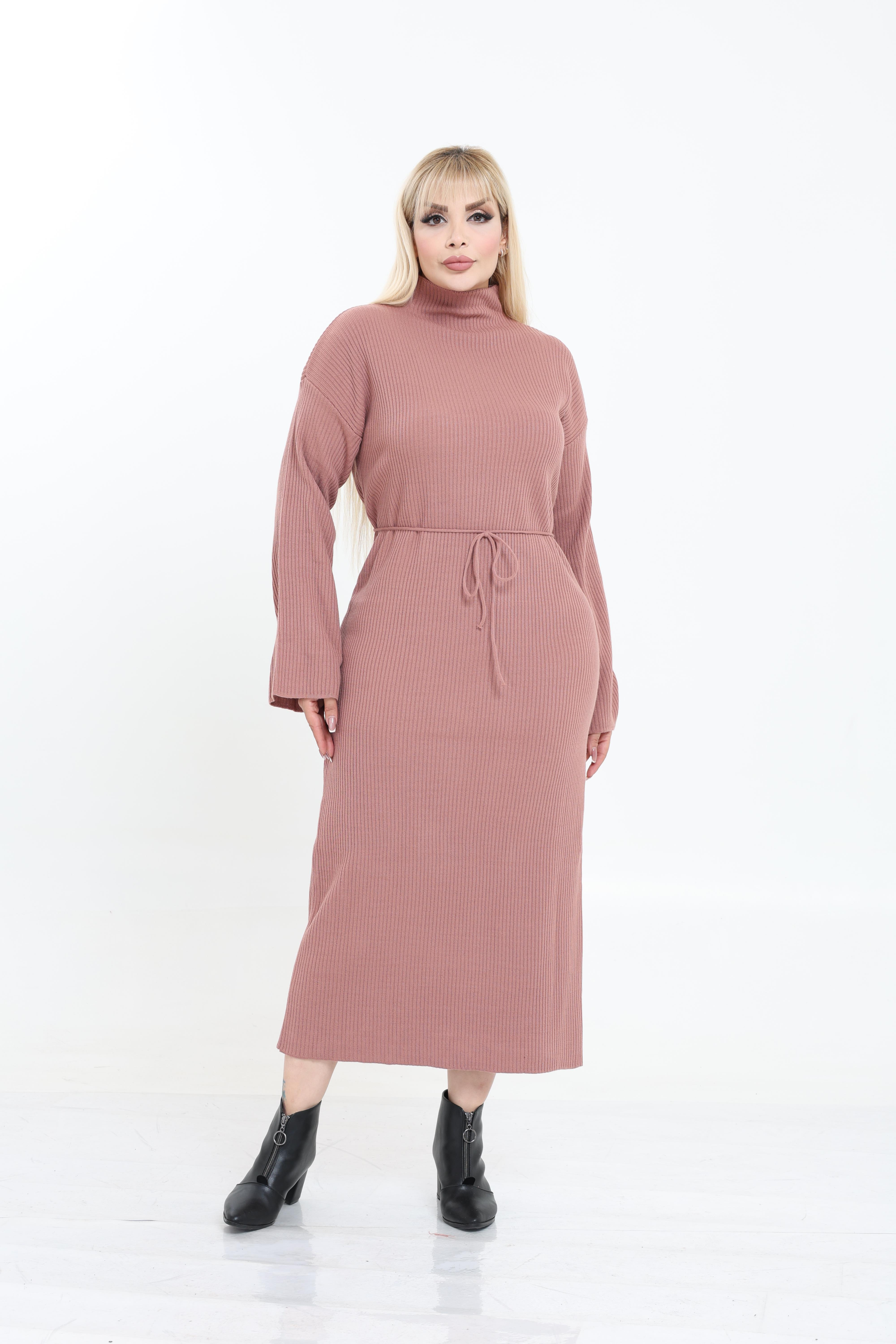 Dik Yaka Geniş Kol Triko Örme Elbise (MJ00341)