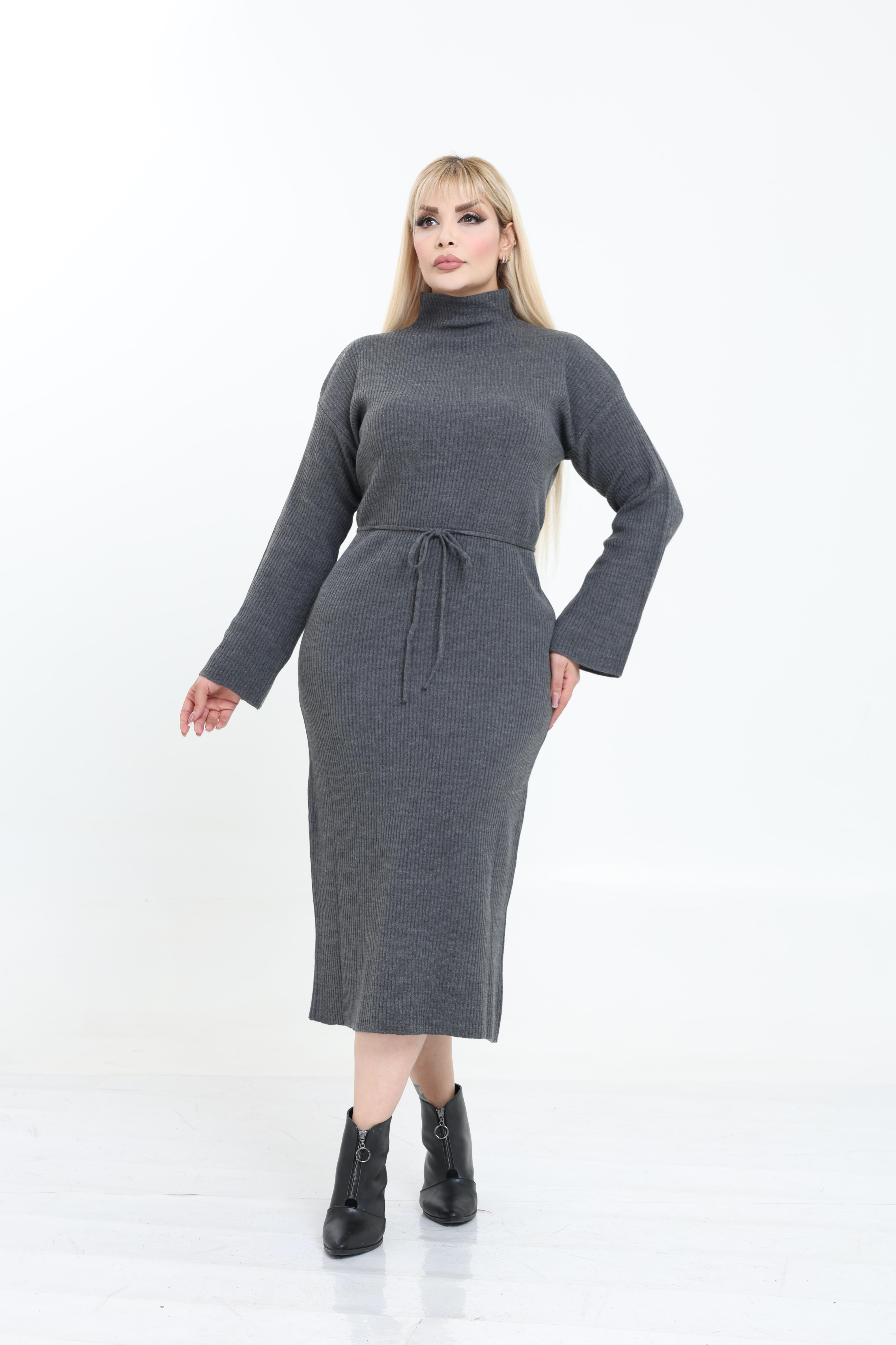 Dik Yaka Geniş Kol Triko Örme Elbise (MJ00342)